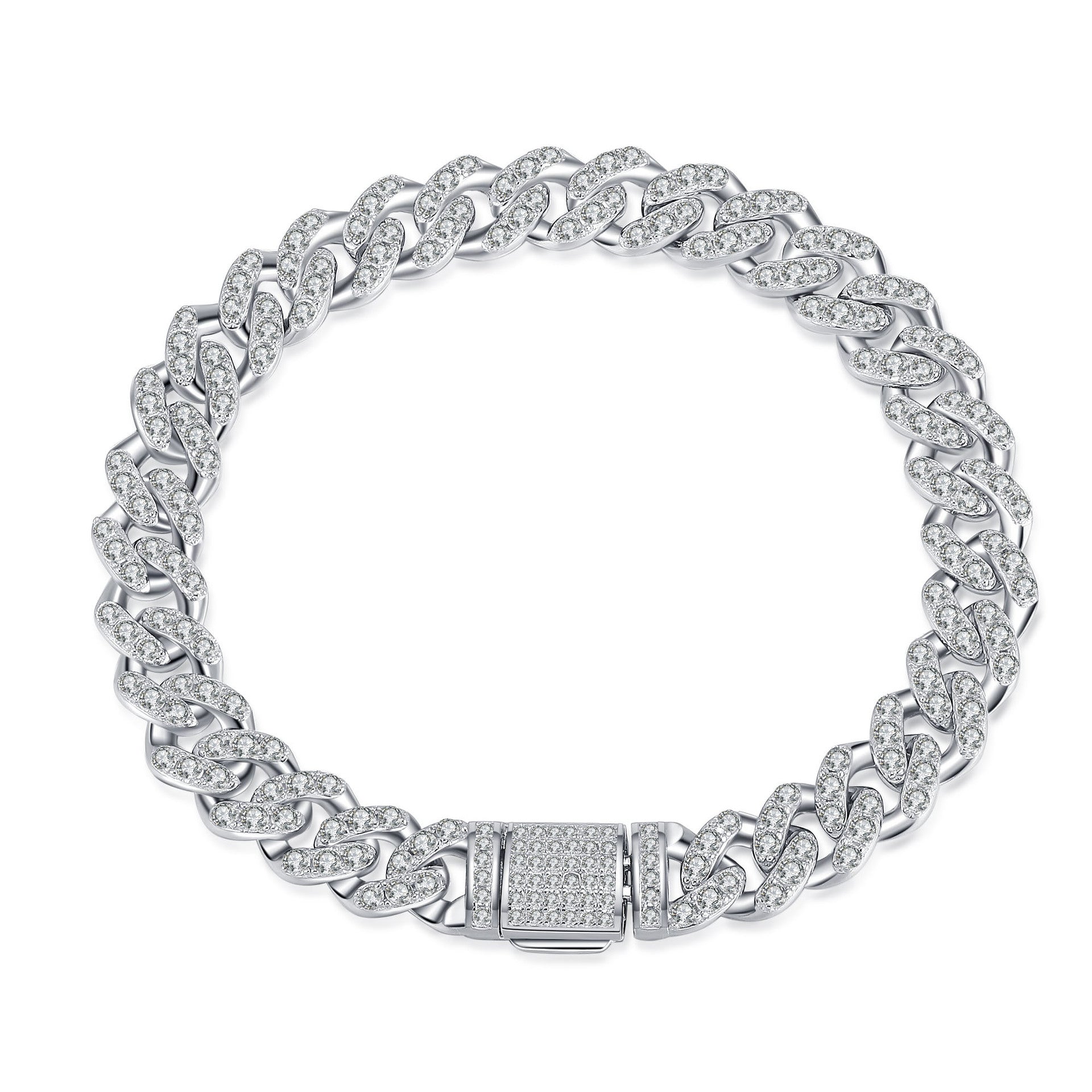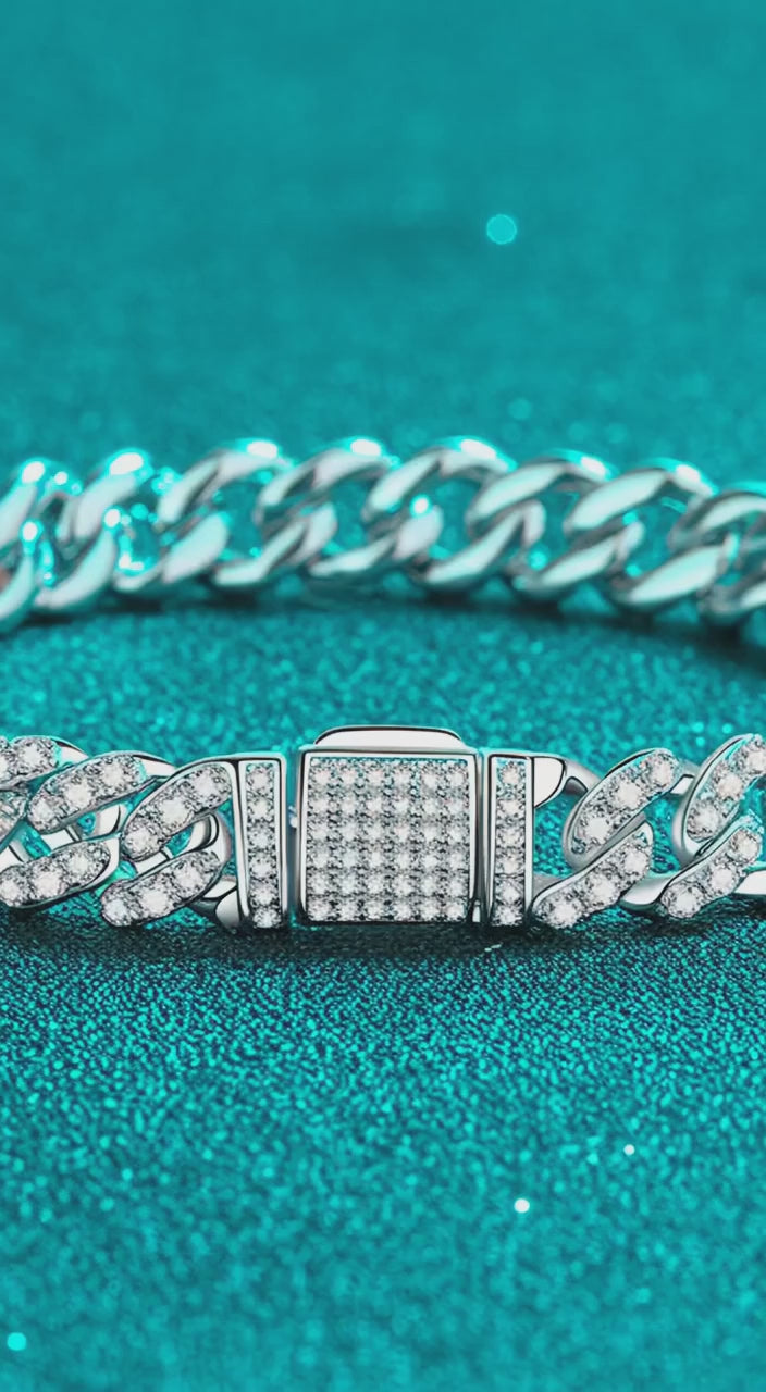 925 Sterling Silver Cuban Chain Moissanite Bracelet