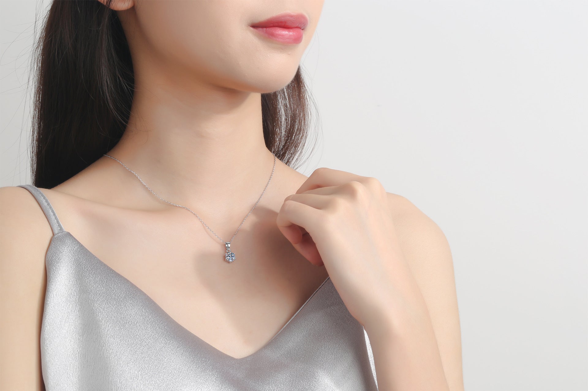 925 Sterling Silver Necklace for Women 1 Carat Moissanite Six-Prong Pendant Necklace Simulated Diamond Collarbone Chain Direct Supply from Manufacturer