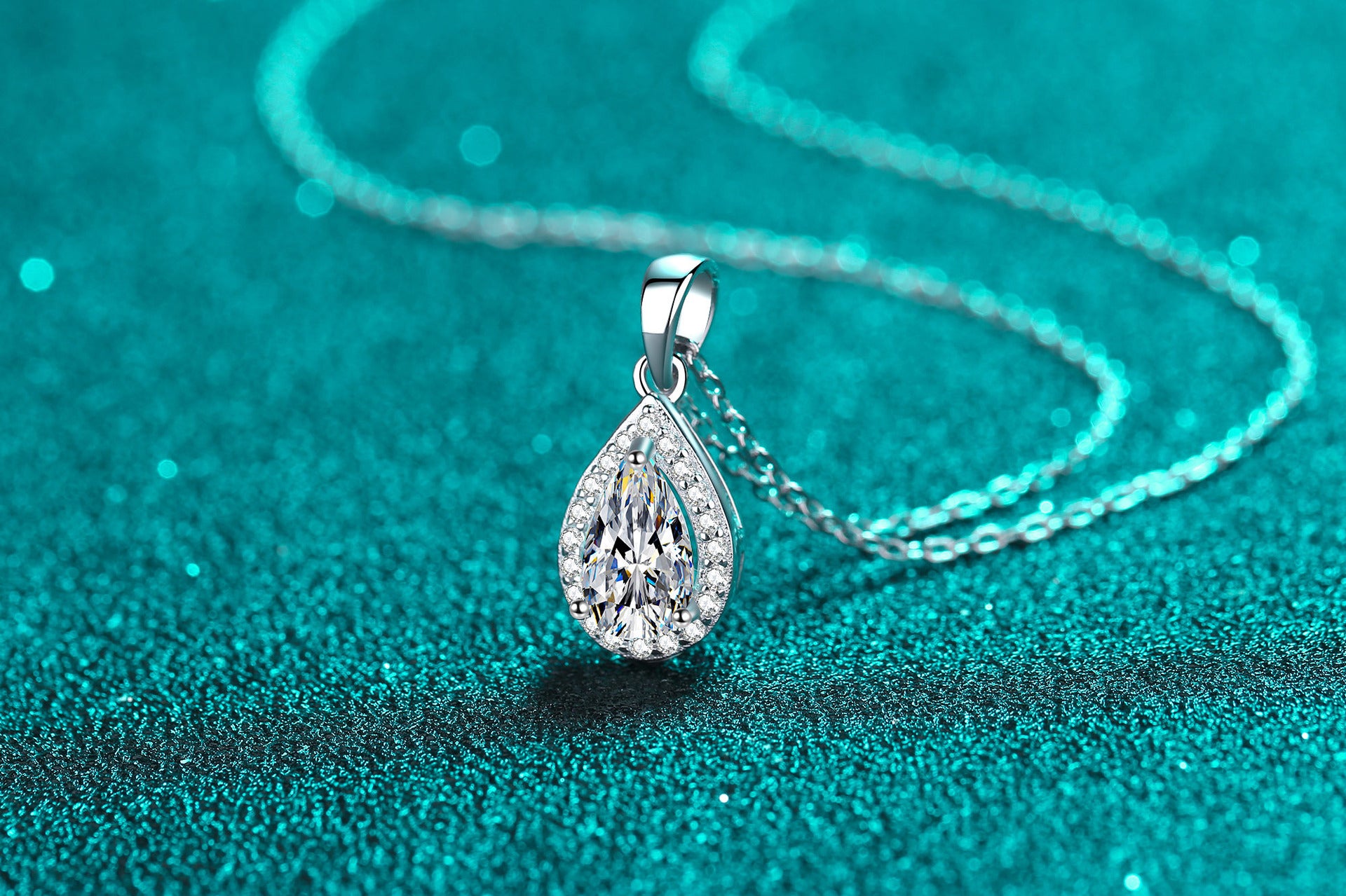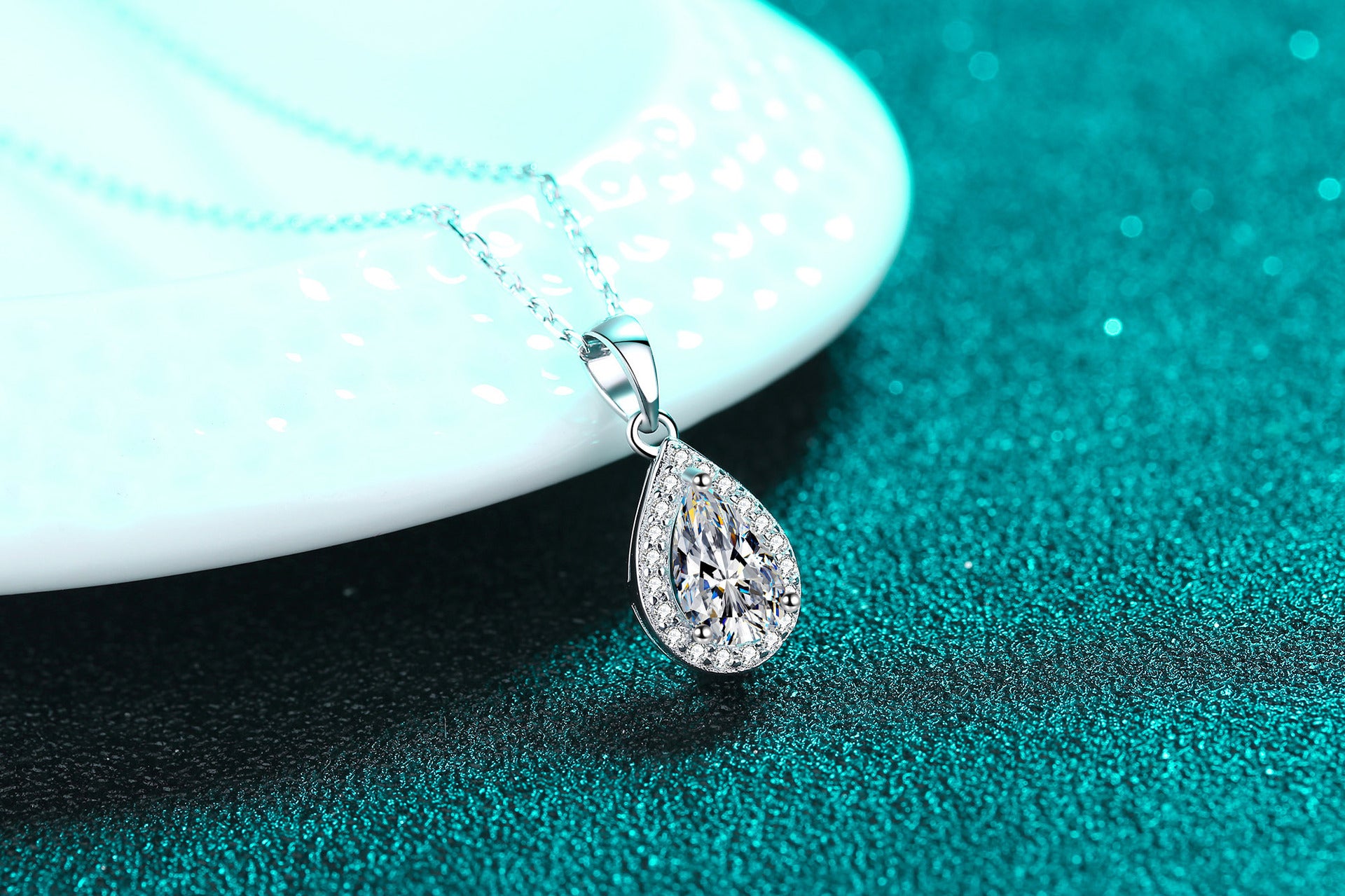 925 Sterling Silver Necklace for Women 5*8 Pear-shaped Moissanite Collarbone Chain Plated with PT950 Gold Cluster Inlay Neck Chain Manufacturer Wholesale