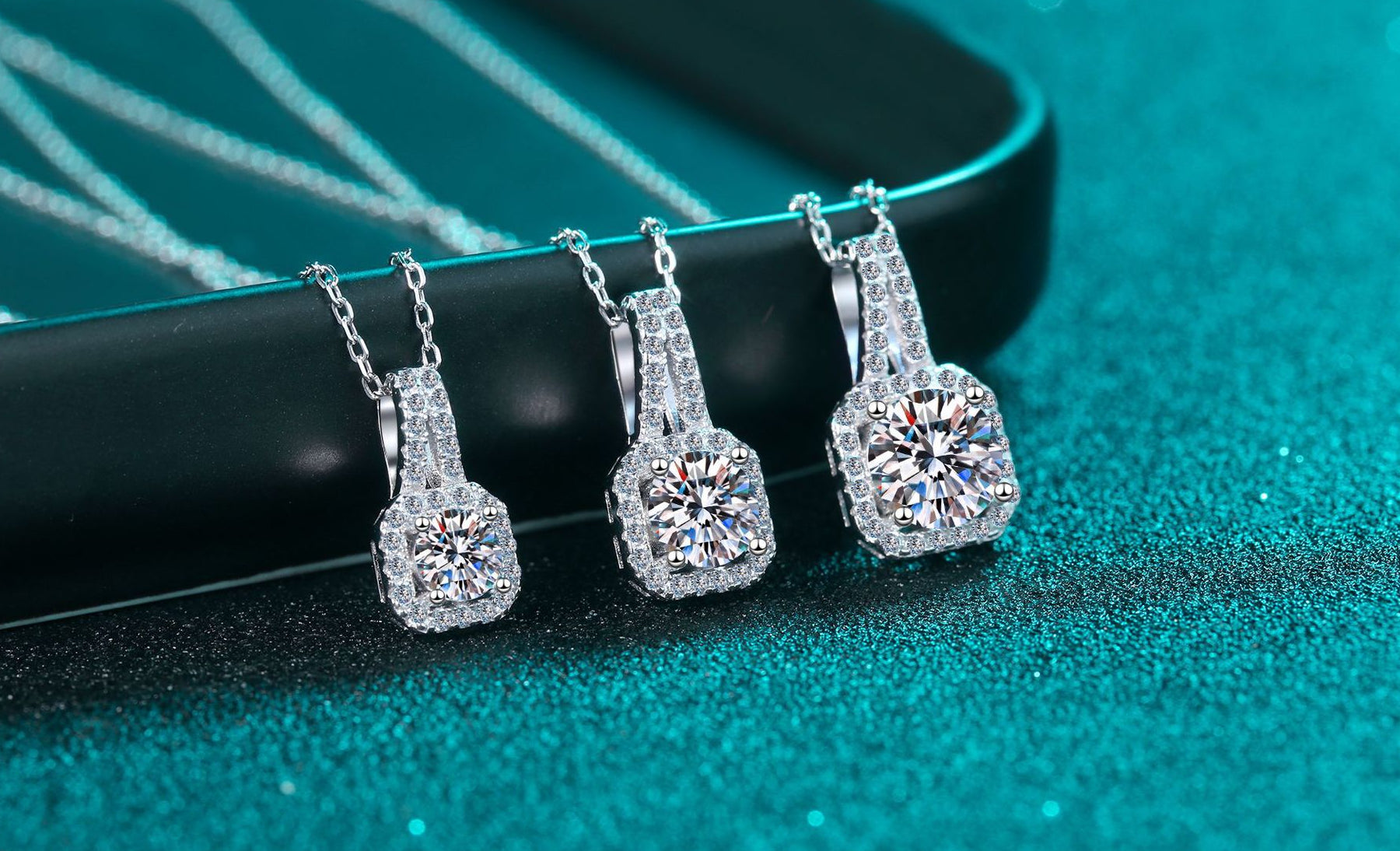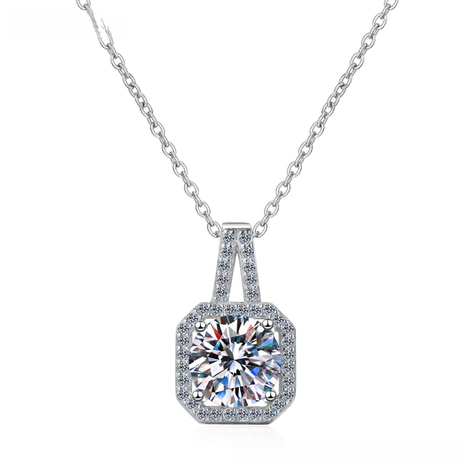 925 Sterling Silver Plated PT950 Gold Necklace Four-Prong Women Moissanite Necklace Sachet Pendant Collarbone Chain Direct Supply from Manufacturer