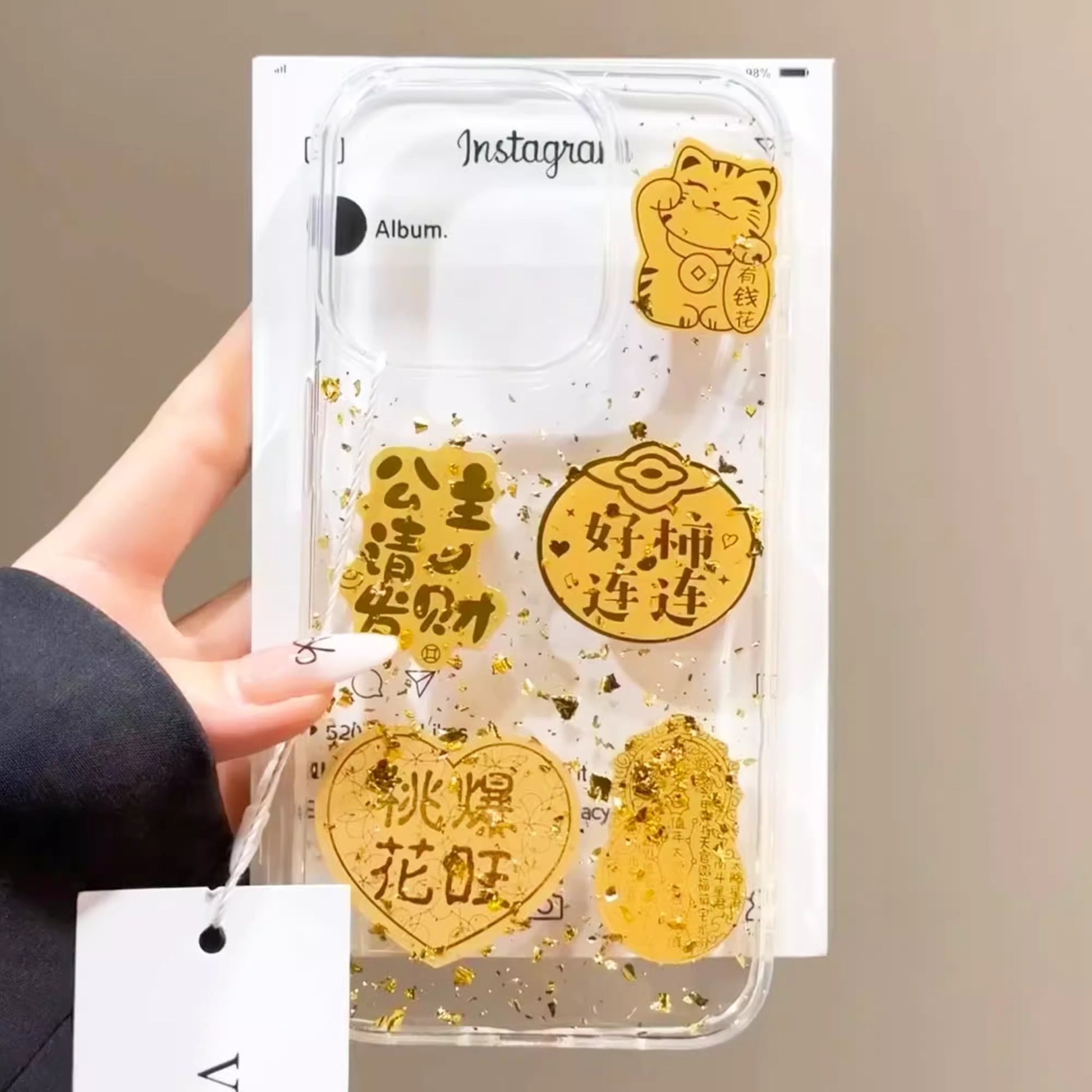 Crafted from 99.9% pure gold, this phone sticker carriesprofound cultural and emotional weight.It's a token of "eternal affection"- gold's timeless lustermirrors lasting bonds, be it for lovers, family or friends. As adaily companion, it embodies "blessings on the go"rooted in Eastern culture, gold symbolizes safety and goodfortune, guarding every moment of the user's day.With sleek designs(plain, traditional motifs or cuteshapes), it blends subtle luxury with daily life, turning asmall gift into a carrier of sincere wishes.