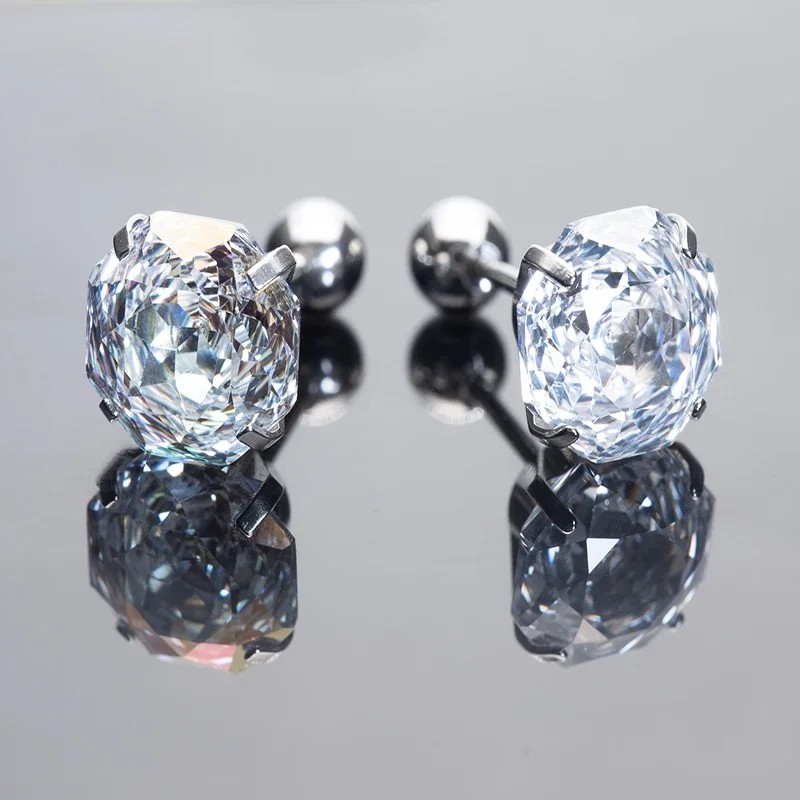 Cubic Zirconia Stainless Steel Earring Rose Cut Cinderella Color 8.0mm Jewelry for Women Wholesale 4 Prong Tragus Earrings