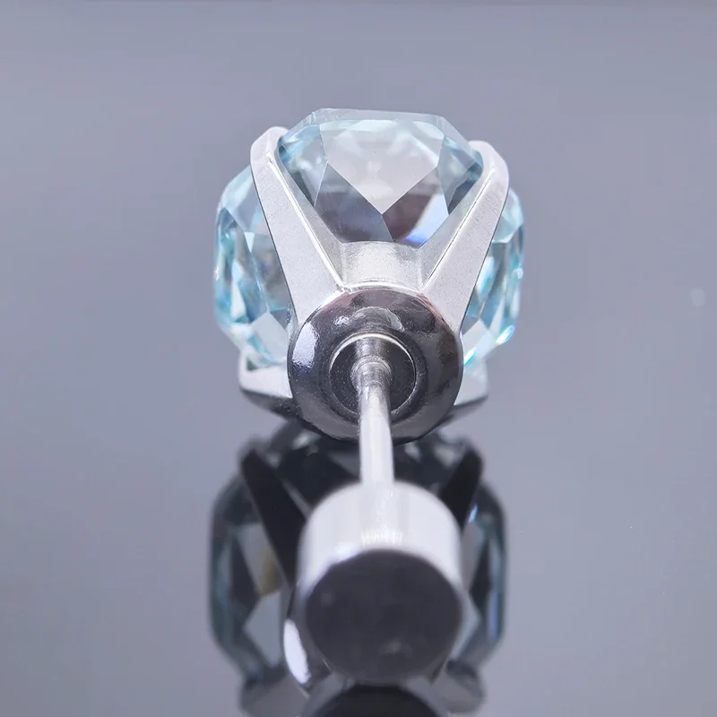 Cubic Zirconia Stainless Steel Earring Rose Cut Grey Blue Color 8.0mm Jewelry for Women Wholesale 4 Prong Tragus Earrings
