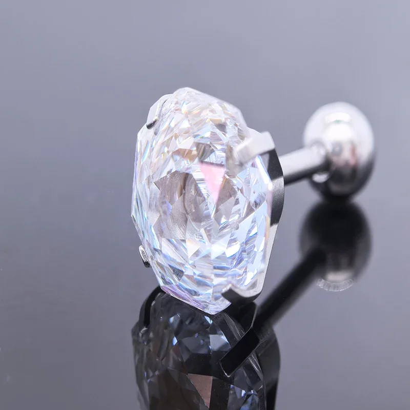 Cubic Zirconia Stainless Steel Earring Rose Cut White Color Jewelry for Women Wholesale 4 Prong Tragus Earrings
