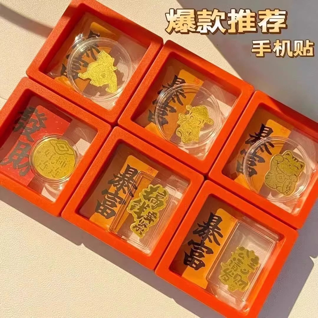 Gold phone stickers blend traditional culture with modern trends. Culturally, they inherit gold’s traditional symbolism of wealth, nobility, and auspiciousness, often featuring designs like the God of Wealth or lucky phrases to convey good wishes, reflecting a modern interpretation of traditional fortune culture. They also mirror contemporary consumer culture—young people now value gold for emotional and social value over just investment, using these stickers to express individuality. Socially, they spark sharing on social platforms, becoming a topic for youth interaction.