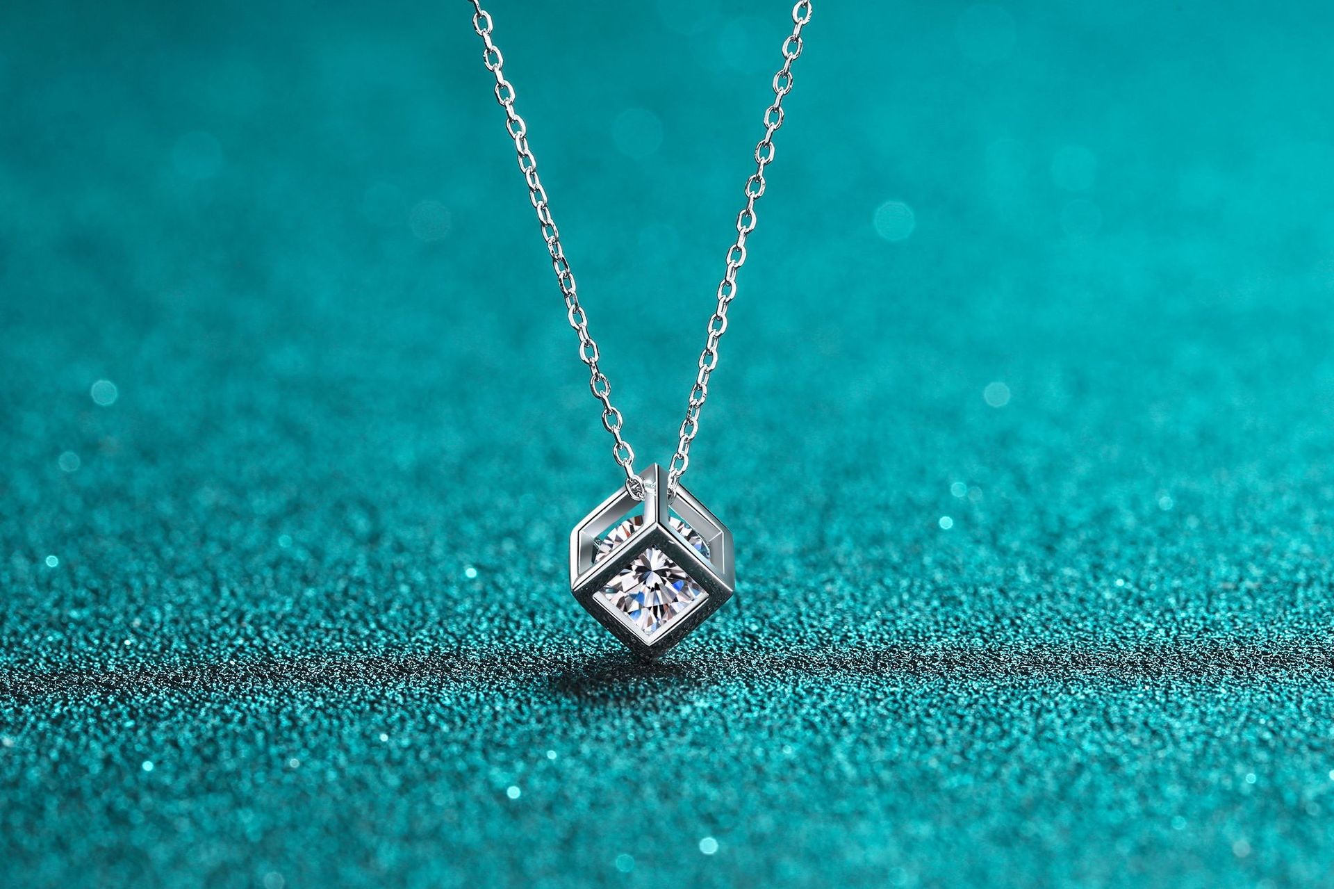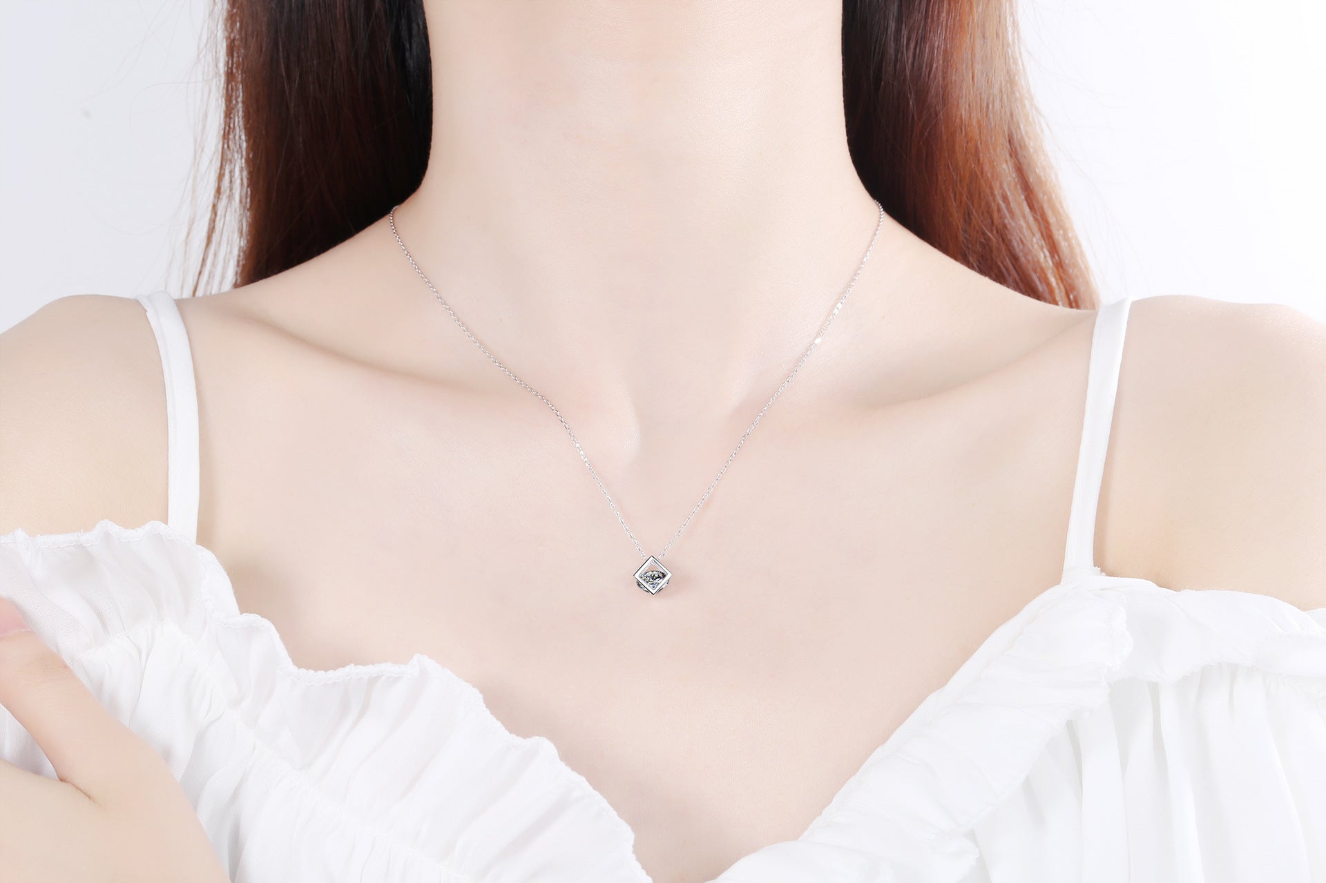 Moissanite Diamond Necklace S925 Silver Plated PT950 Gold Necklace Square Pendant Direct Supply from Manufacturer Live Hot-Selling Model