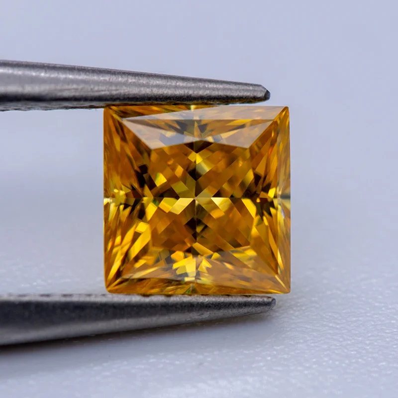 Moissanite Gemstone Princess Cut Golden Yellow color Lab Grown Diamond Advanced Jewelry Making Materials with GRA Certificate