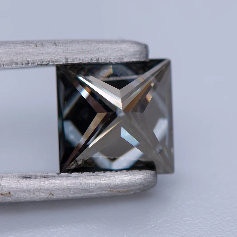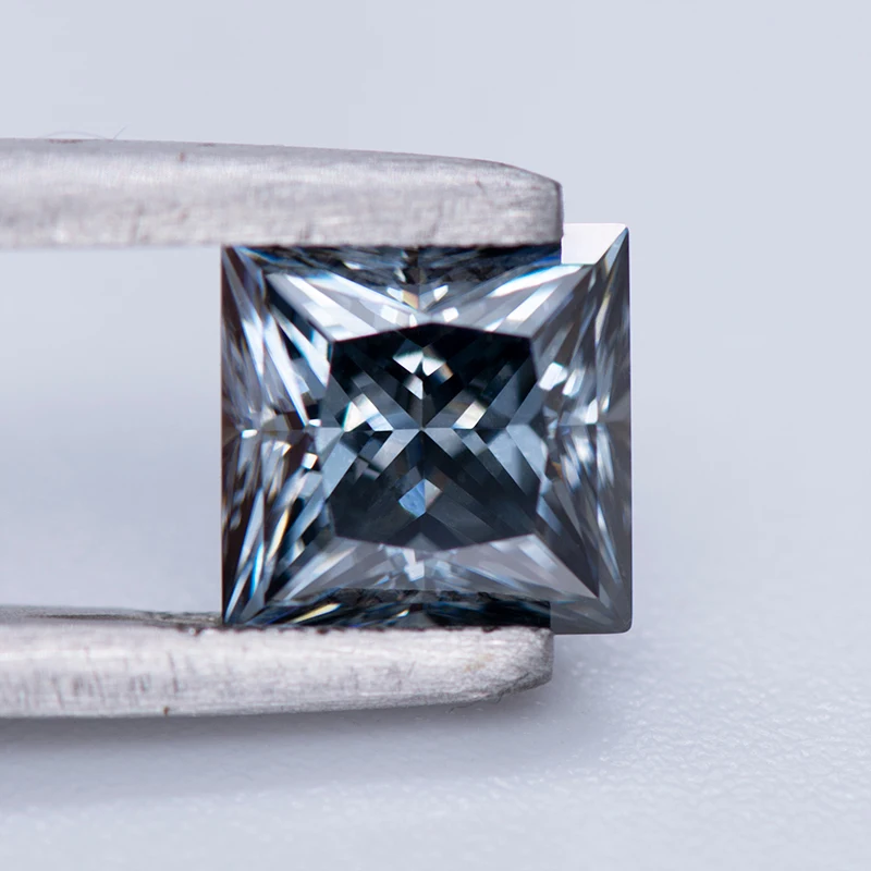 Moissanite Gemstone Princess Cut Gray color Lab Grown Diamond Advanced Jewelry Making Materials with GRA Certificate