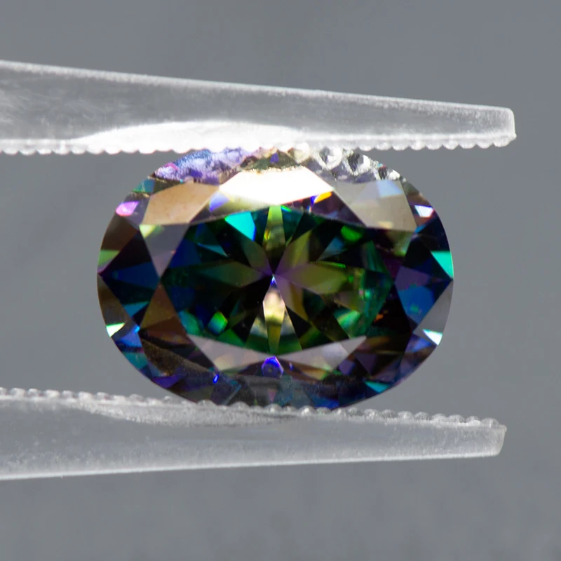Moissanite Loose Diamond Rainbow Green Color Oval Cut Lab Grown Gemstone Jewelry Making Materials Comes with GRA Certificate