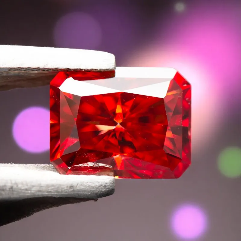 Moissanite Stone Garnet Red Radiant Cut Gemstone for DIY Advanced Jewelry Rings Earrings Making with Certificate