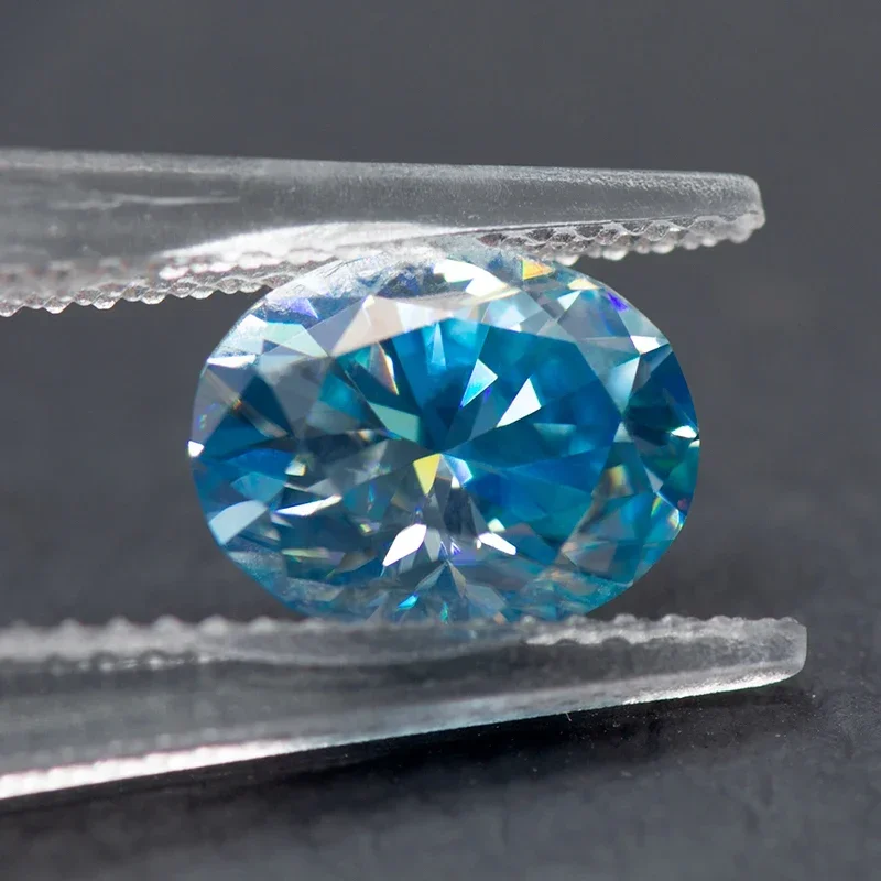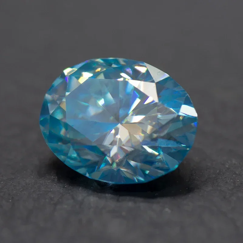 Moissanite Stone Oval Cut Sea Blue Colour Lab Grown Diamond DIY Ring Necklace Earrings Main Materials Comes with GRA Certificate