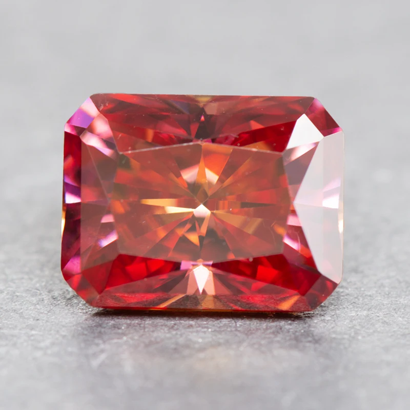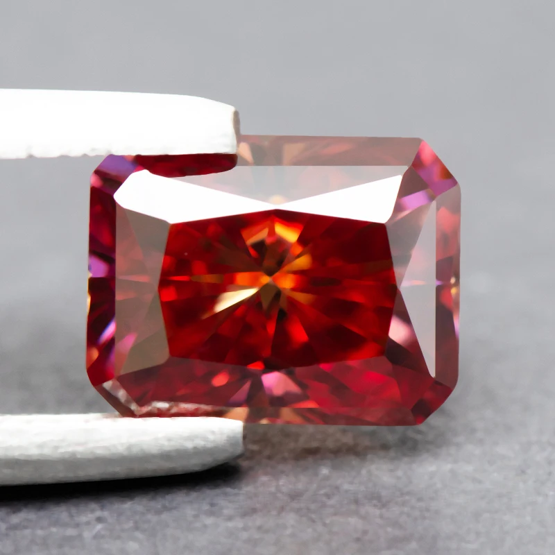 Moissanite Stone Watermelon Red Color Radiant Cut Charms Gemstone DIY Advanced Jewelry Rings Earrings Making with Certificate