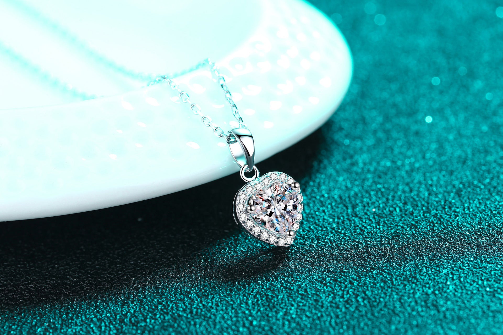 S925 Sterling Silver Heart Necklace for Women with Moissanite Cluster Clavicle Chain, PT950 Gold Plated Jewelry, Direct Supply from Manufacturer Wholesale