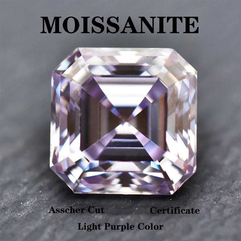 Wholesale Moissanite Stone Asscher Cut Light Purple Color Extremely Shiny Quality DIY Advanced Jewelry Rings Earrings Making Cer