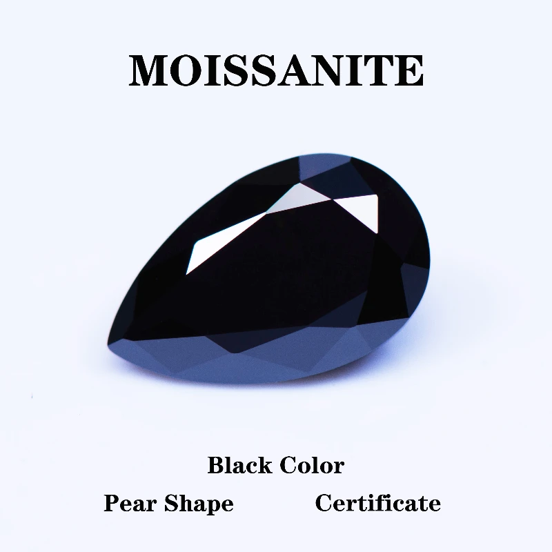 Wholesale Moissanite Stone Pear Cut Black Color 13x18mm Size DIY Charms Ring Necklace Earrings Main Materials with Certificate W
