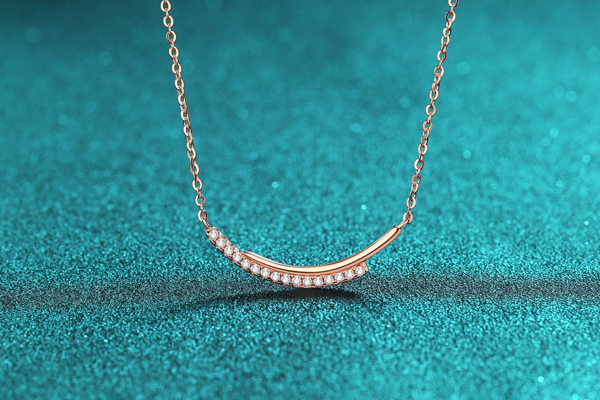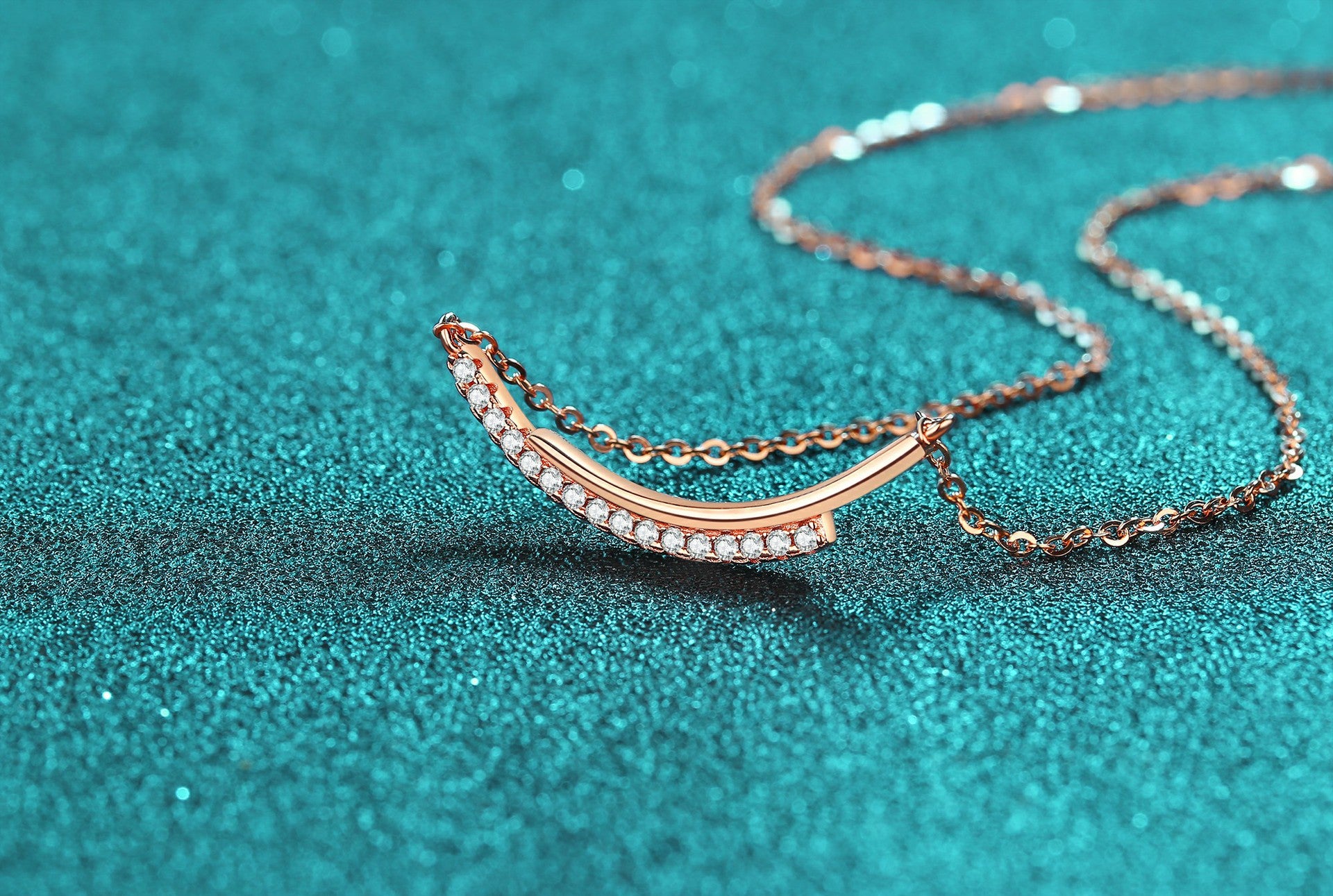 Xindeyi S925 Sterling Silver Moissanite Champagne Gold Necklace for Women Smile Row Diamond Line Chain Simple High-end Cool Style